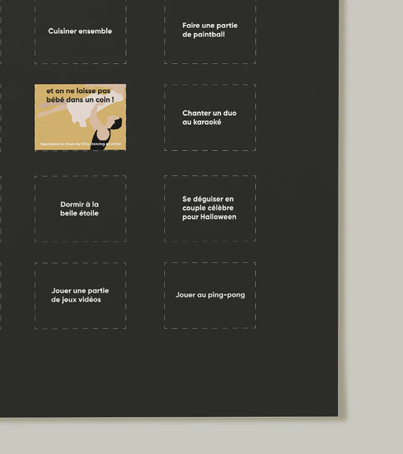 Il vous permettra de voir si vous cocher les cases d'un couple qui sait s'amuser et vous fera réaliser des choses parfois peu banales !